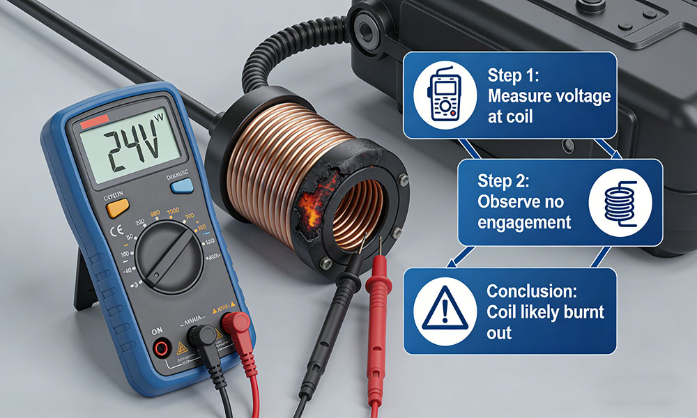 You can further test the mechanical engagement by setting your thermostat to cooling mode and listening for the physical movement of the armature. If 24 volts are reaching the coil but no engagement occurs, the coil is likely burnt out.